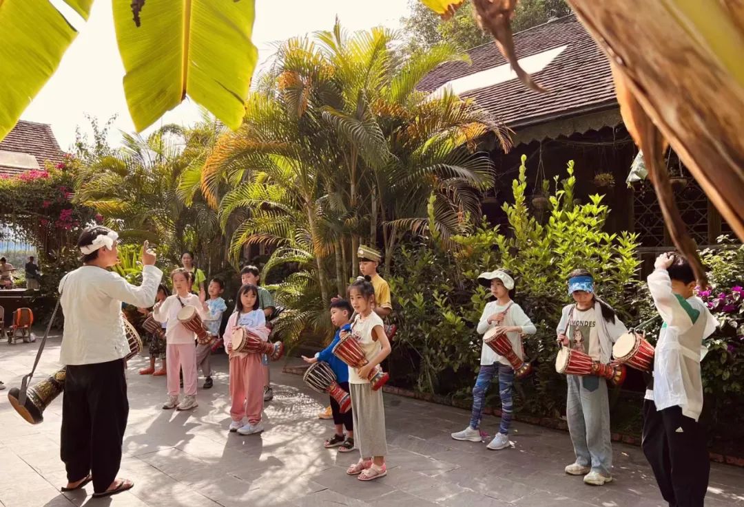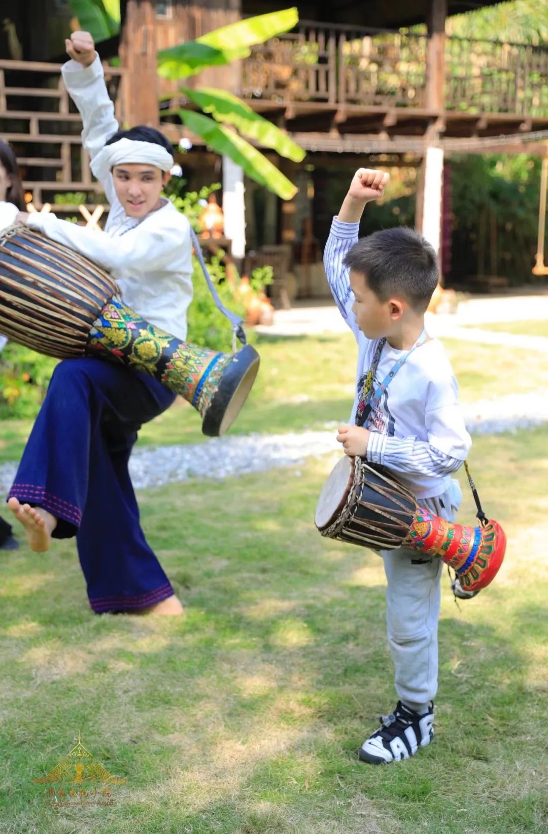 在我们雨林之行Happy Ending的篝火晚宴上,象脚鼓舞的非遗传承人艺术家萧岩和他的团队也将为大家现场演绎这项传统舞蹈的表演。孩子们也可以一起加入哦~