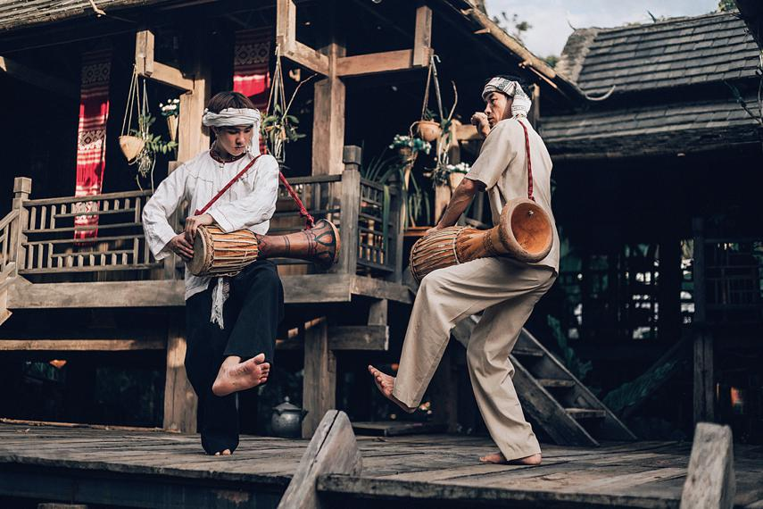 在傣族,遇到重大节日和丰收喜庆的日子,族人们都会跳起一种让他们引以为傲的象脚鼓舞来喜悦之情。