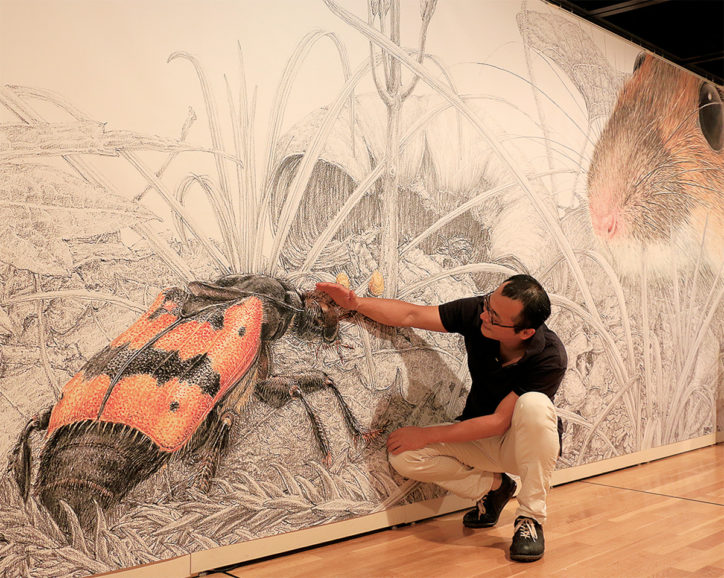 馆野鸿与原画展上他的巨幅画作