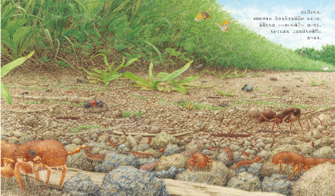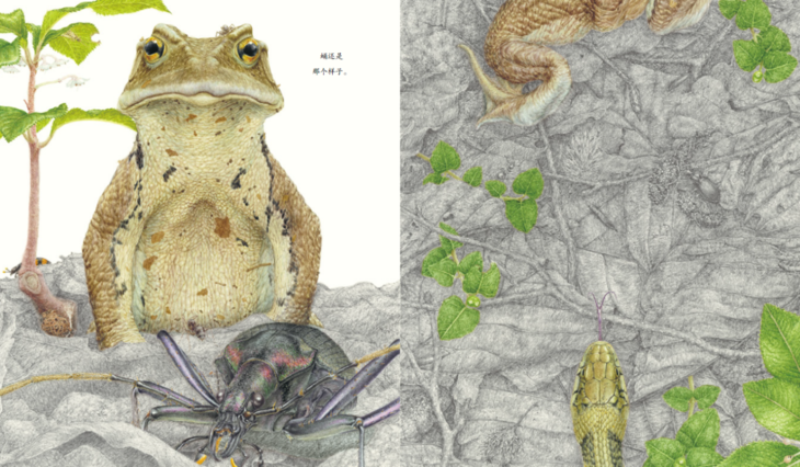 他花了很多时间进行生物调查,一边调查一边画生物画。他的第一本绘本是在41岁时才出版的。以他的绘画才能,直到40岁后才出版完全属于自己的绘本作品是令我十分惊讶和佩服的。画生物画和出一本书,要求不同。能把这个过程走顺,而不透支自己的才能,是一种智慧。过早踏入不能完全掌控的领域,其实很可能是有害的,这样的情况在国内原创图书的出版过程中常常出现。