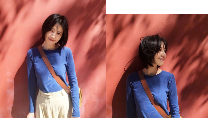 长袖棉T,女明星也最爱穿,高圆圆晒出的私服照,蓝色基础款长T搭配红墙背景,舒适、简约又时尚,太好看了吧!!