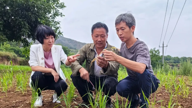 一行人到小米地里查看生长情况,此时还在下雨