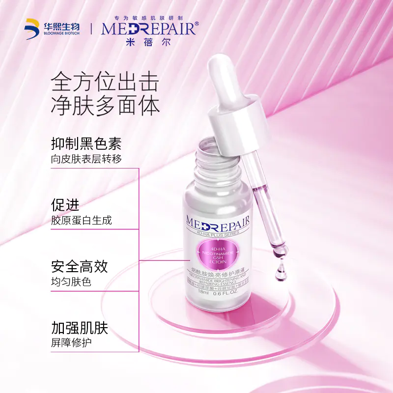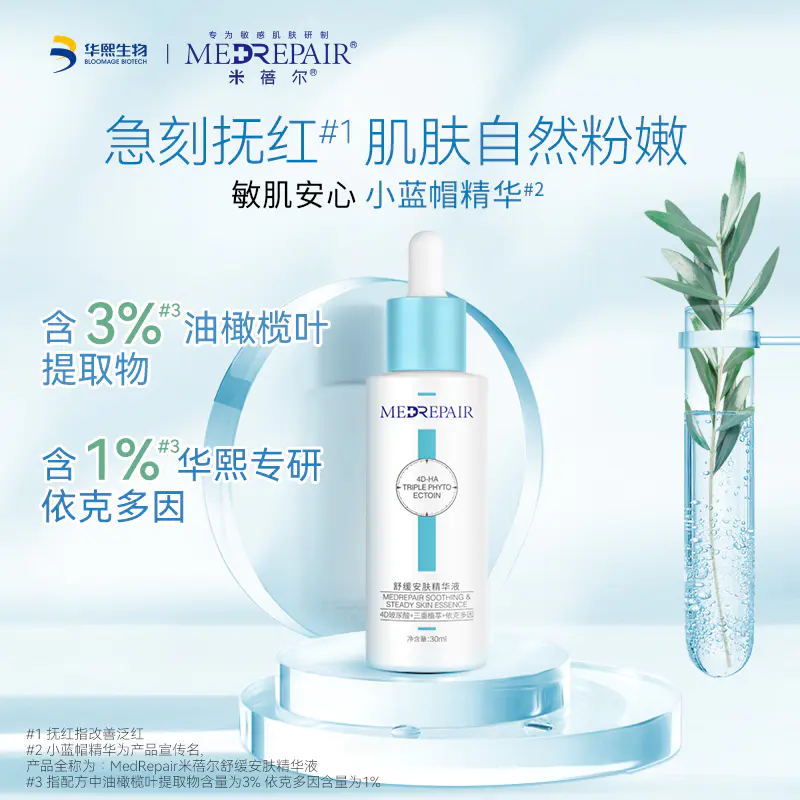 华熙生物集团旗下——米蓓尔MEDREPAIR,源自华熙生物多年潜心研发,“精于修复,专注美丽”为消费者解开敏肌密码,4D-HA四重活水创专利配方取代市场主成分,提供解决敏肌问题的方案。