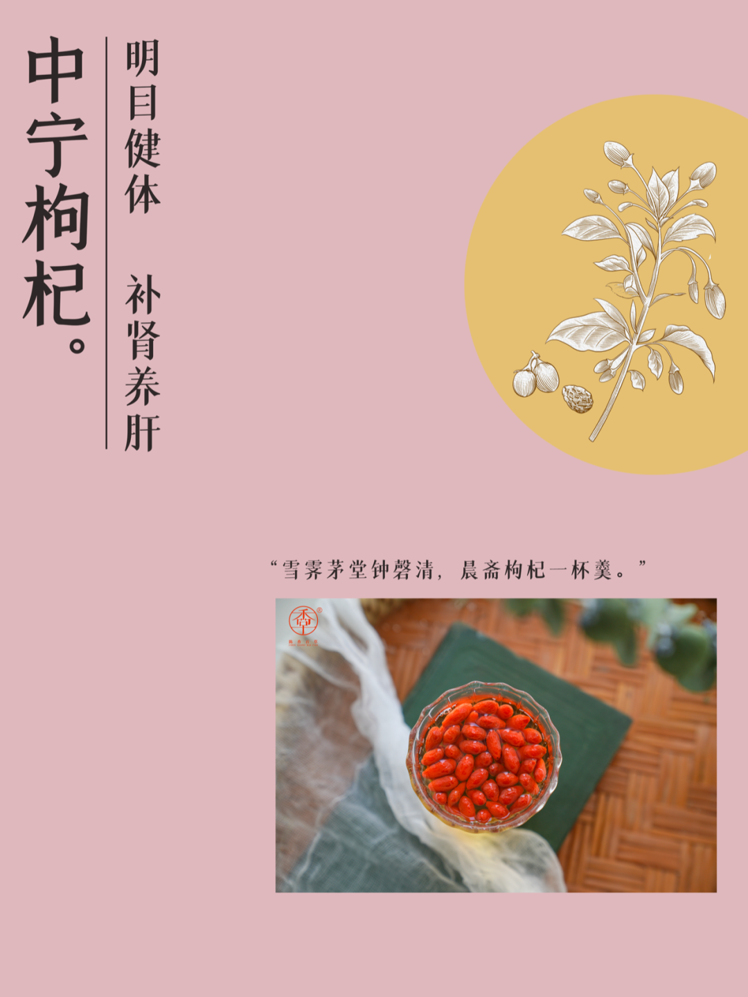 《本草纲目》记载枸杞可“补精气诸不足……明目安神,令人长寿……久服坚筋骨,轻身不老,耐寒暑。”