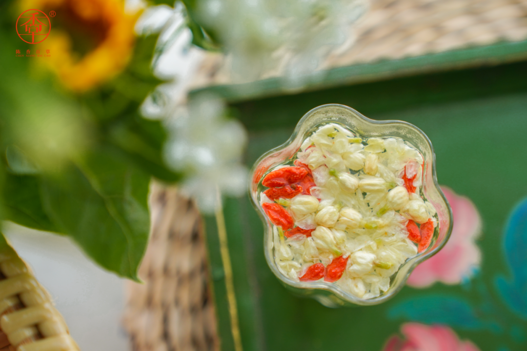 搭配茉莉,能促进新陈代谢,有美容养颜、抗衰防老、提亮肤色、减少色斑。还能养肝明目、理气止痛。
