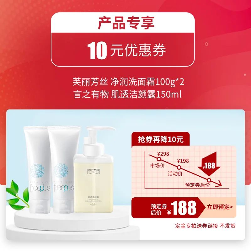 1、【温和清洁】芙丽芳丝 净润洗面霜100g*2支+言之有物 肌透洁颜露150ml 198元