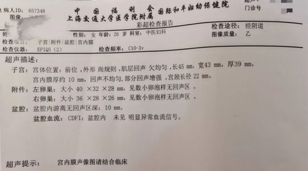 一年前,我终于下定决心,去我们那里很有名的三甲妇科医院就诊。那天从医院回来,心情并不轻松。因为一直报告告诉我,原来我确实生病了,而且不是很容易治好的病——多囊。