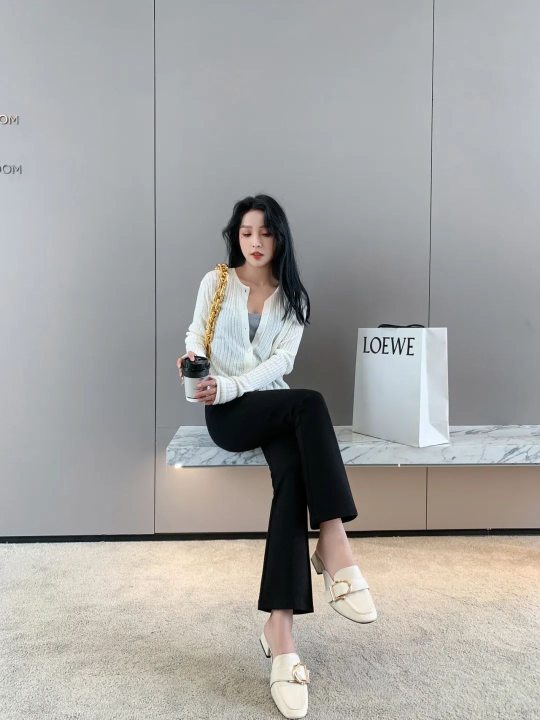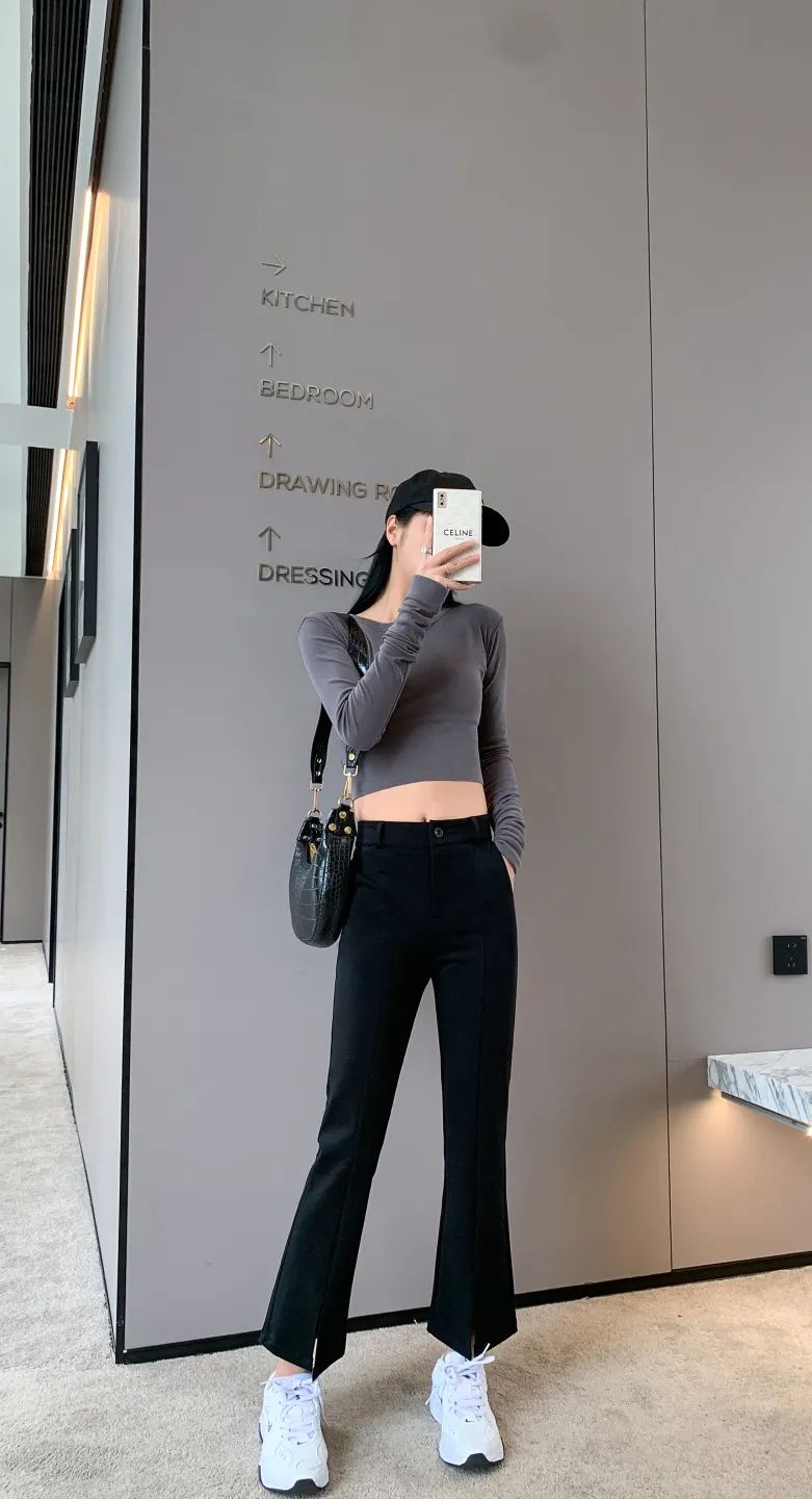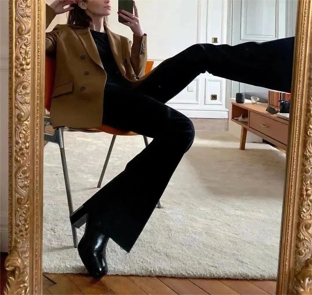 比起烂大街的阔腿裤,喇叭裤不管怎配都很有时尚感。