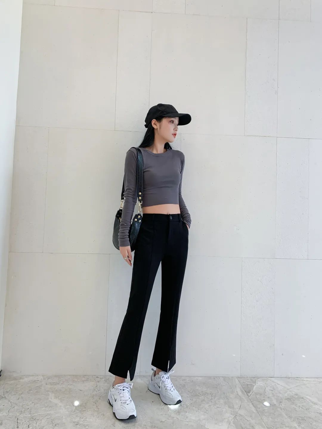 像这种简单的纯色裤子,百搭效果完全不输阔腿裤!