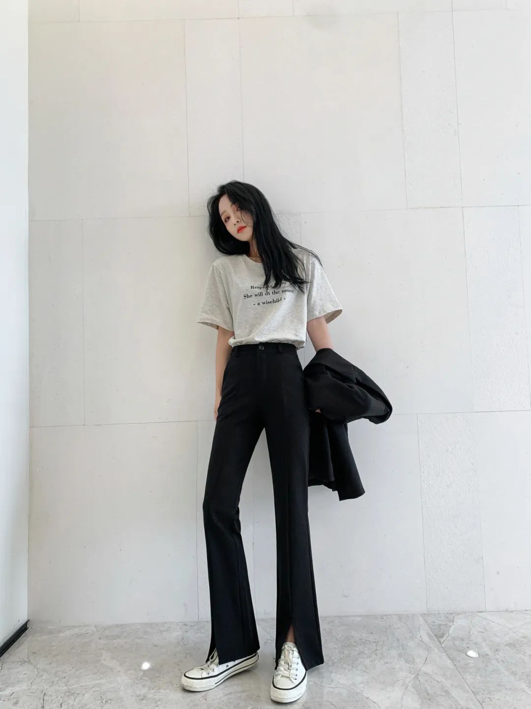 今年开春就bao火的开叉喇叭裤,从臀部到膝盖贴合修饰,再加上独特的微喇叭形状在视觉上拉长腿部线条,一米五也能穿出了一米六的既视感。