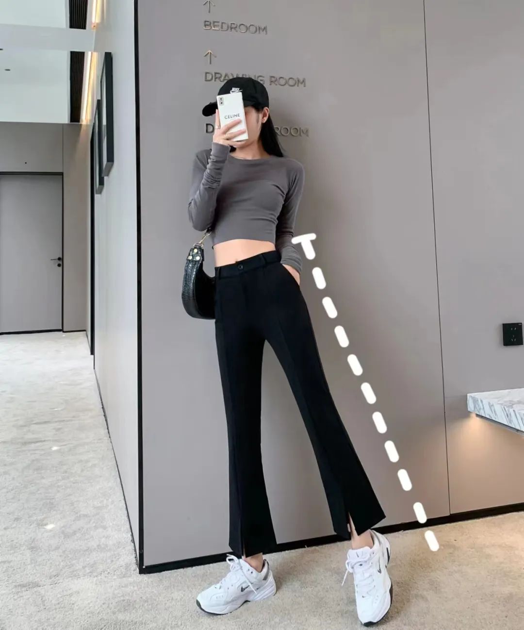 这条开叉喇叭裤,是专门为国人女性1:1量身定制的裤型,能规避大多数人的身材雷点。