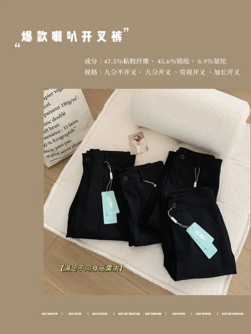 除了开叉设计外,还贴心做了无开叉款式:九分不开叉、九分开叉、常规开叉、加长开叉4款