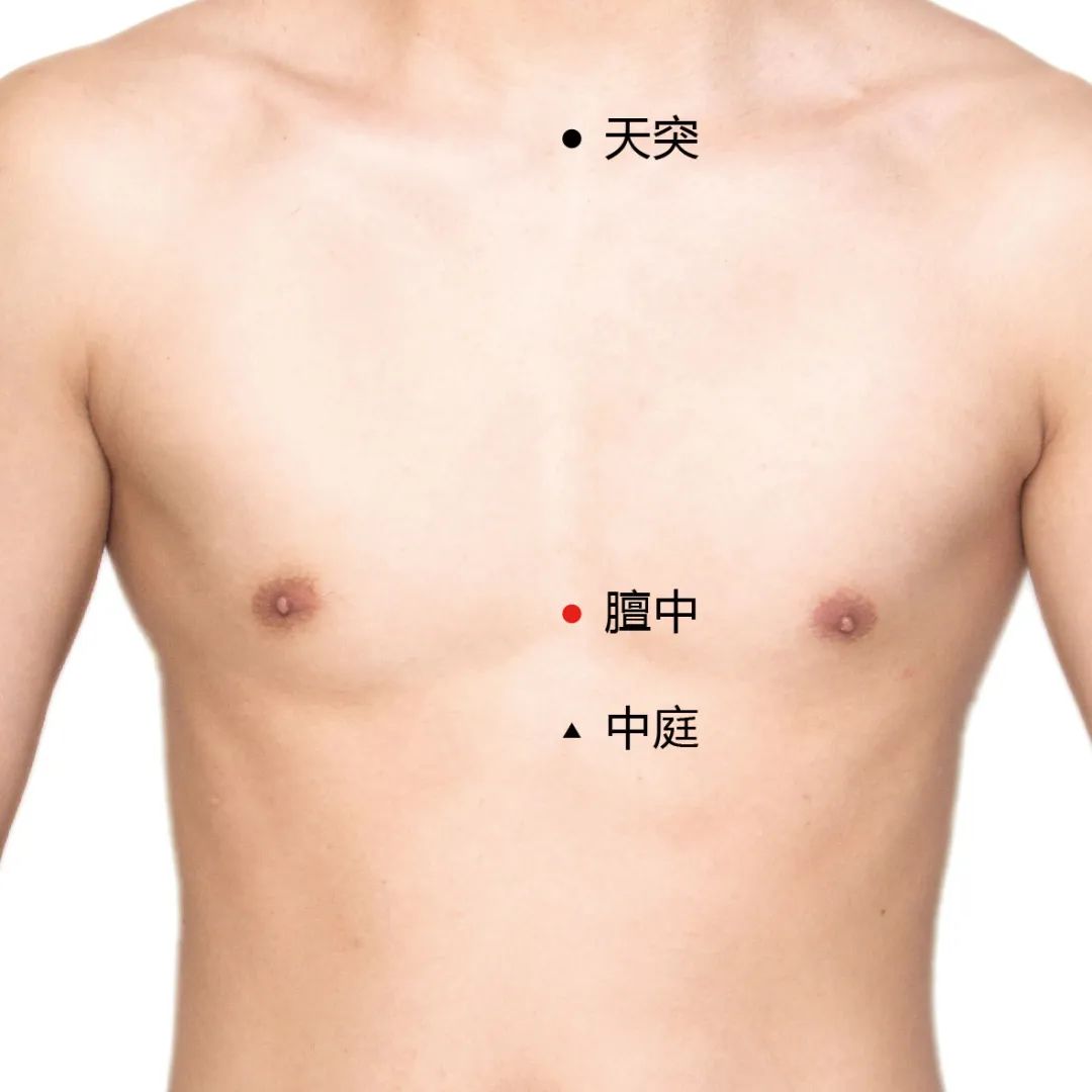 膻中:气会膻中,膻中是人体气机汇聚的地方,因此气机容易在这里郁结,故而,艾灸膻中可以消气解郁,而只要气顺了,气血循环就通畅了。