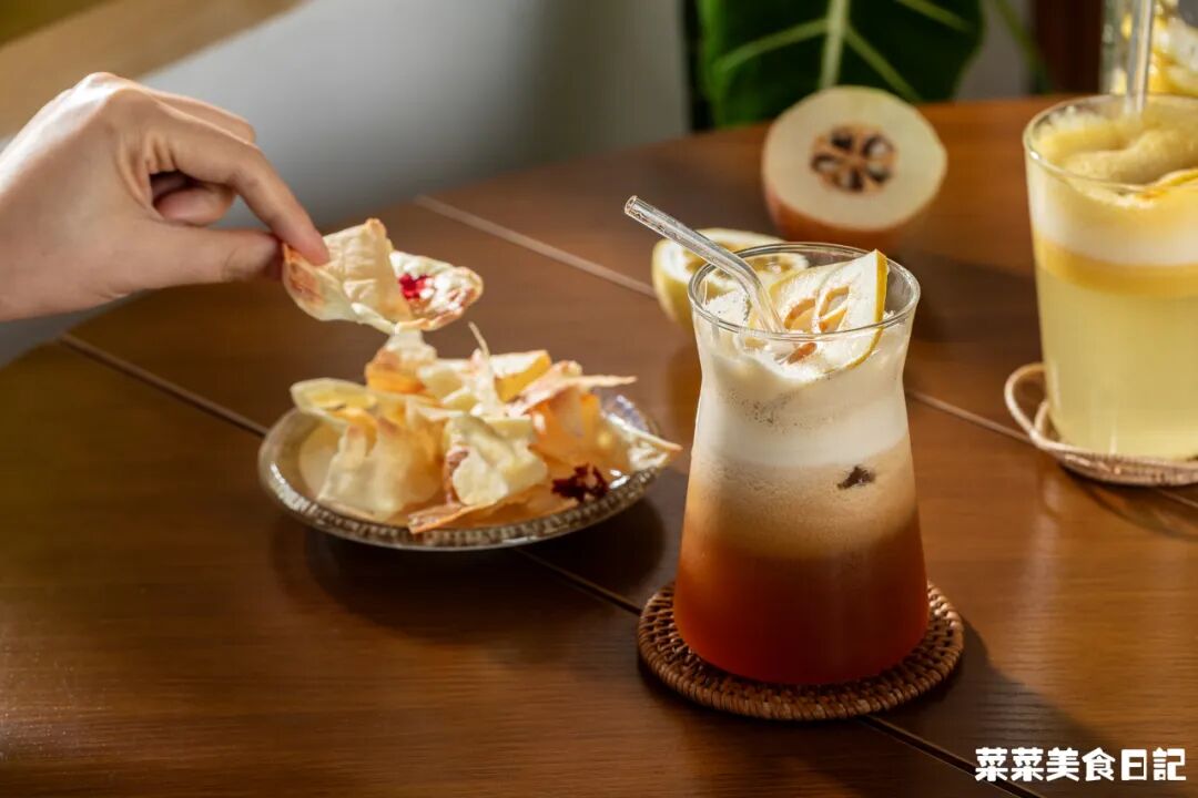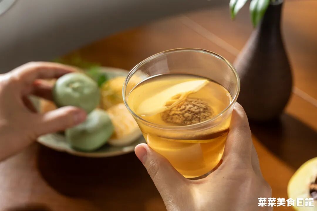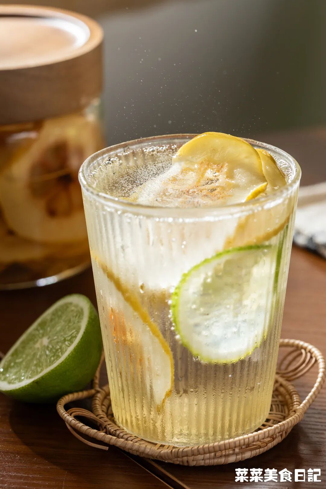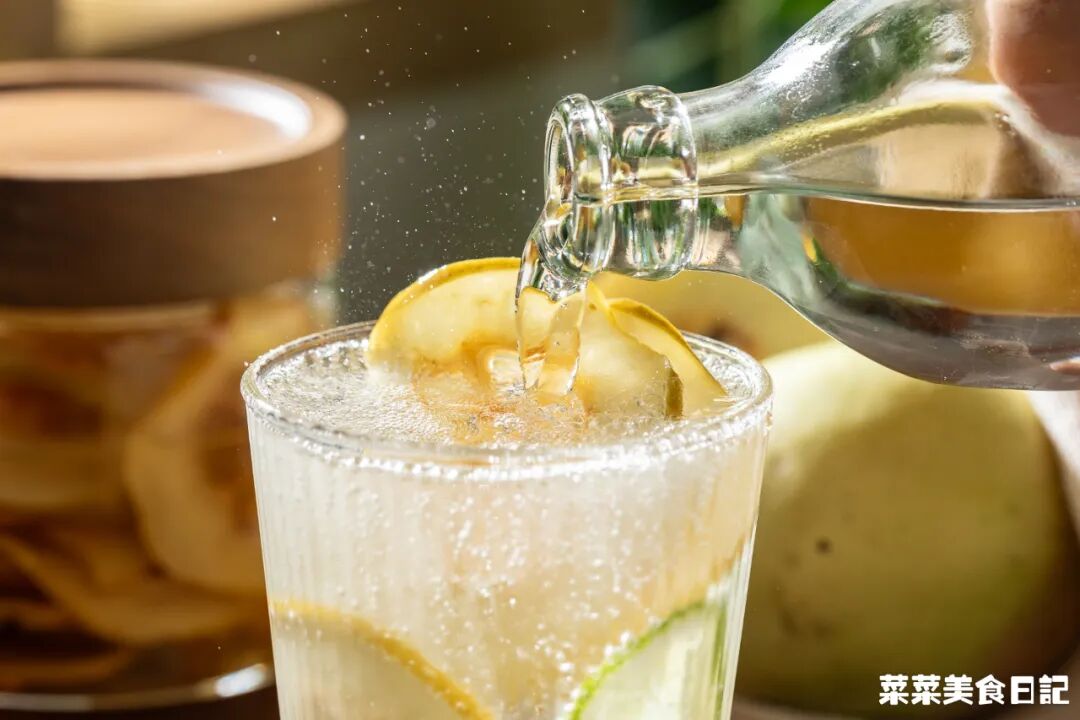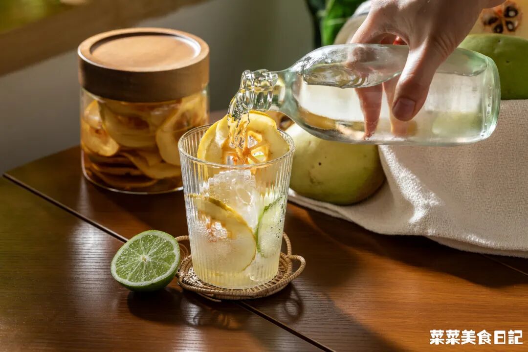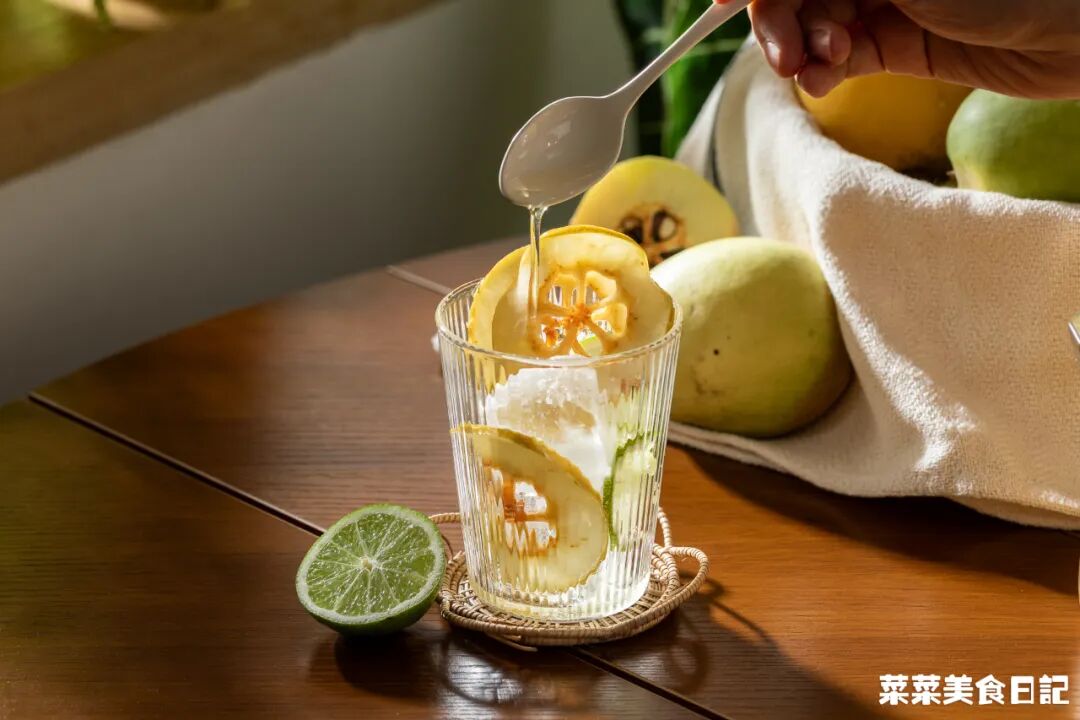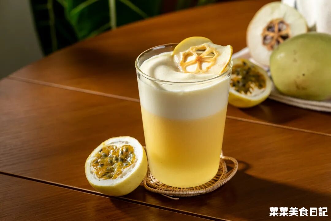 做好的酸木瓜露就是风味糖浆,拿来调饮品很合适,下面分享4个方子。2大勺酸木瓜露+3片腌渍酸木瓜片+少许冰块+苏打水。味道不算惊艳,有甜味,有酸味,有气泡感,是一杯能点亮心情的小甜水。如果想在中秋家宴上简单调个饮品,这个方子就很合适,开胃又解腻,拍照也很好看。20g酸木瓜露+30g腌渍酸木瓜片+2个百香果+120g茉莉花茶+30g冰,搅拌机低速搅打10秒,过滤饮用。没有搅拌机的话就不搅拌,直接所有材料摇匀,但搅拌机搅打出来风味会更加融合。而且,搅打过程中会产生细密的泡沫,装进杯子里会形成自然的分层。口感绵柔顺滑,入口是热带水果的馥郁香气,茉莉茶香隐匿其间,增加一份清爽感。咖啡爱好者,可以直接在第一杯酸木瓜苏打的配方上增加一个浓缩。20-25g木瓜露+30-50g腌渍酸木瓜片+30g菠萝汁/50g新鲜菠萝+120-150g冷萃咖啡液+30g冰,搅拌机低速搅打10秒,过滤饮用。