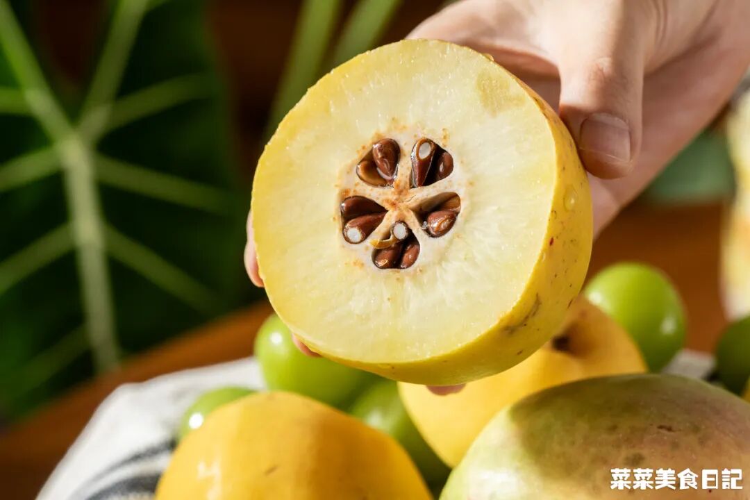 这几年研发老师们纷纷开始上山下乡,把目光锁定在了小众水果身上。芭乐、油柑、橄榄、黄皮已是过去式,今年最出圈的小众水果,当属——随便列几个大牌,今年出的新品都带了酸木瓜元素,可见其火热程度。这木瓜怎么长得跟我认识那个不一样?!木瓜不是香甜口的吗,怎么会是酸的呢?!哈哈,咱们平时吃的那个软糯香甜的番木瓜,原产热带美洲,明清时才传入中国。反而这枚陌生的酸木瓜,才是地地道道、土生土长的嫡长瓜!早在《诗经》就有记载,“投我以木瓜,报之以琼琚;匪报也,永以为好也!”在水果都往甜味培育的今天,酸木瓜几千年如一日,保持着未被驯服的酸。有多酸?比柠檬、山楂还要酸出好几倍呢,果肉还很硬实。它和苹果同属蔷薇科,闻起来有突出的苹果香(VC却比苹果高出35倍哦),还隐约带点菠萝、芒果香气。