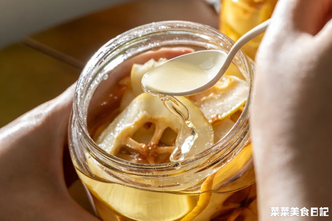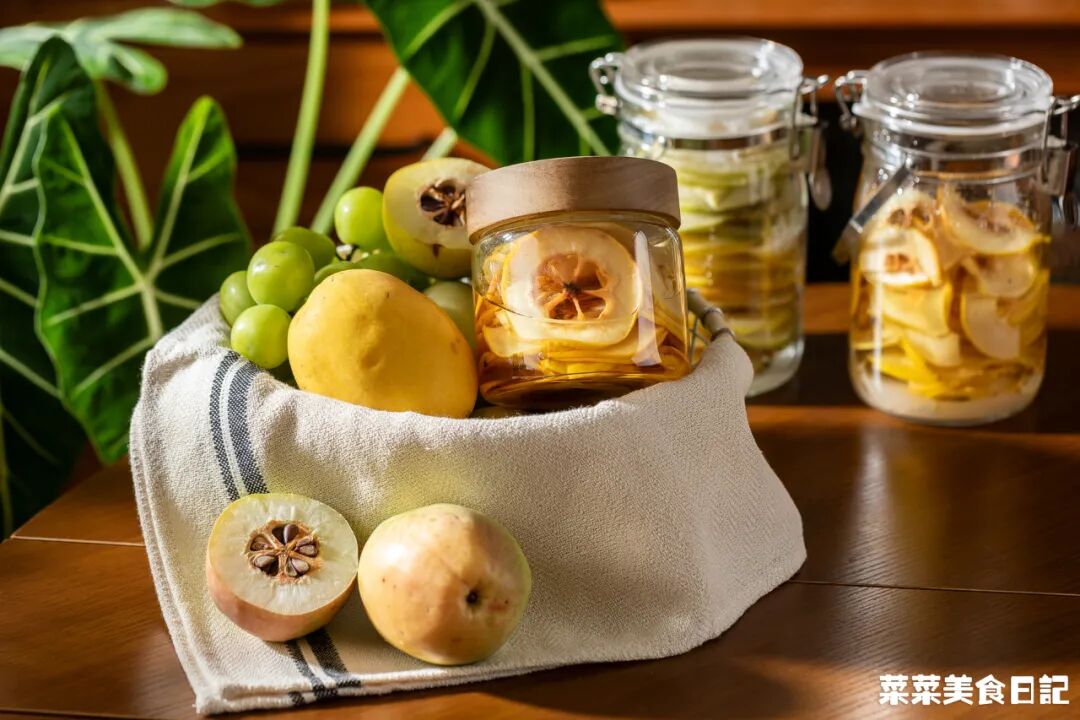 汪曾祺曾说,在他老家,酸木瓜就是用来闻香的,到了昆明才知道它还可以吃。是的,华东、华中、华南都长酸木瓜,但数云南人最爱它。吃法也多,最简单是直接蘸辣椒面,那股子酸辣爽,谁吃谁知道。这天然的酸味剂也很适合入菜,可煮鸡、煮鱼、煮牛肉、炖猪蹄、炒肉等等。云南人还爱拿酸木瓜做各种发酵型饮品,泡木瓜、木瓜醋、木瓜酒...酸木瓜露,可以理解为不用开火、不用熬制的酸木瓜糖浆。酸木瓜切成薄片,一层酸木瓜片,一层白糖,层层叠叠码进玻璃罐里。腌好的酸木瓜片,酸酸甜甜的,爽脆中带点渣感,可算敢大口大口吃了。底下的糖浆更是精华所在,比普通蔗糖多一份湿润的果香。浅尝辄止,酸木瓜露的用法是代替糖,拿来泡水、做冷饮、调咖啡、搭糖水...我一共准备了4种拓展吃法,尽管收好,中秋国庆长假的饮品就有着落了!酸木瓜质地硬实,切起来会有点费劲,一定要注意不要受伤。再来,酸木瓜和糖的比例是1:1,酸木瓜够酸,腌出来并不会很甜。喜酸的朋友可以适当减少糖量,但糖是天然防腐剂,放太少也不行哦。试过用没完全成熟的青皮酸木瓜,腌出来会带点青苹果的涩味,也算特别。不喜欢涩味的,就用全熟的黄皮酸木瓜来做(青皮放几天就会变黄)。[ 食材 ]
