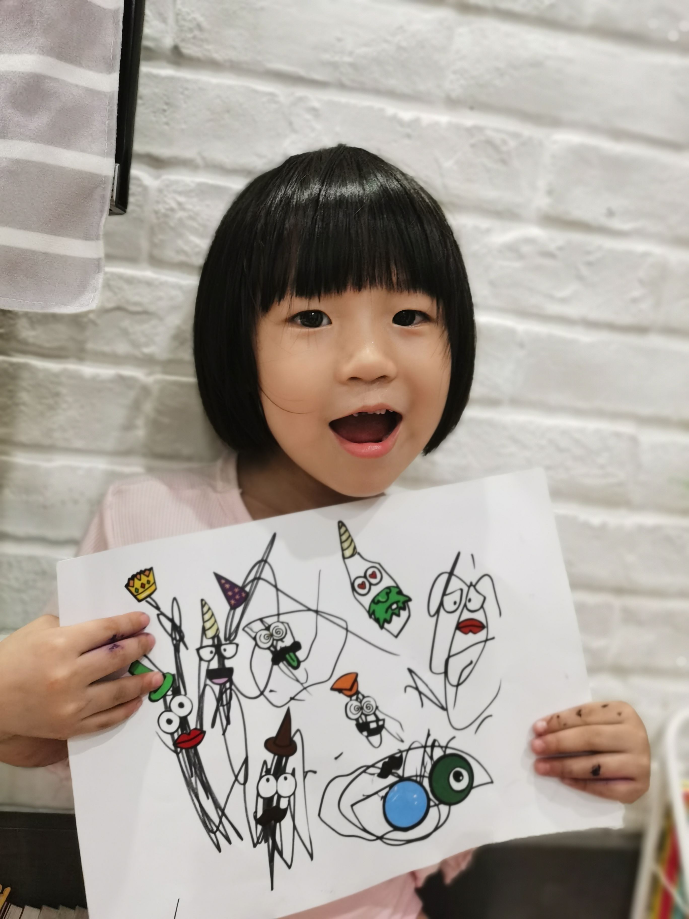 而妹妹创作的涂鸦却比较呆萌可爱,又有点搞怪……