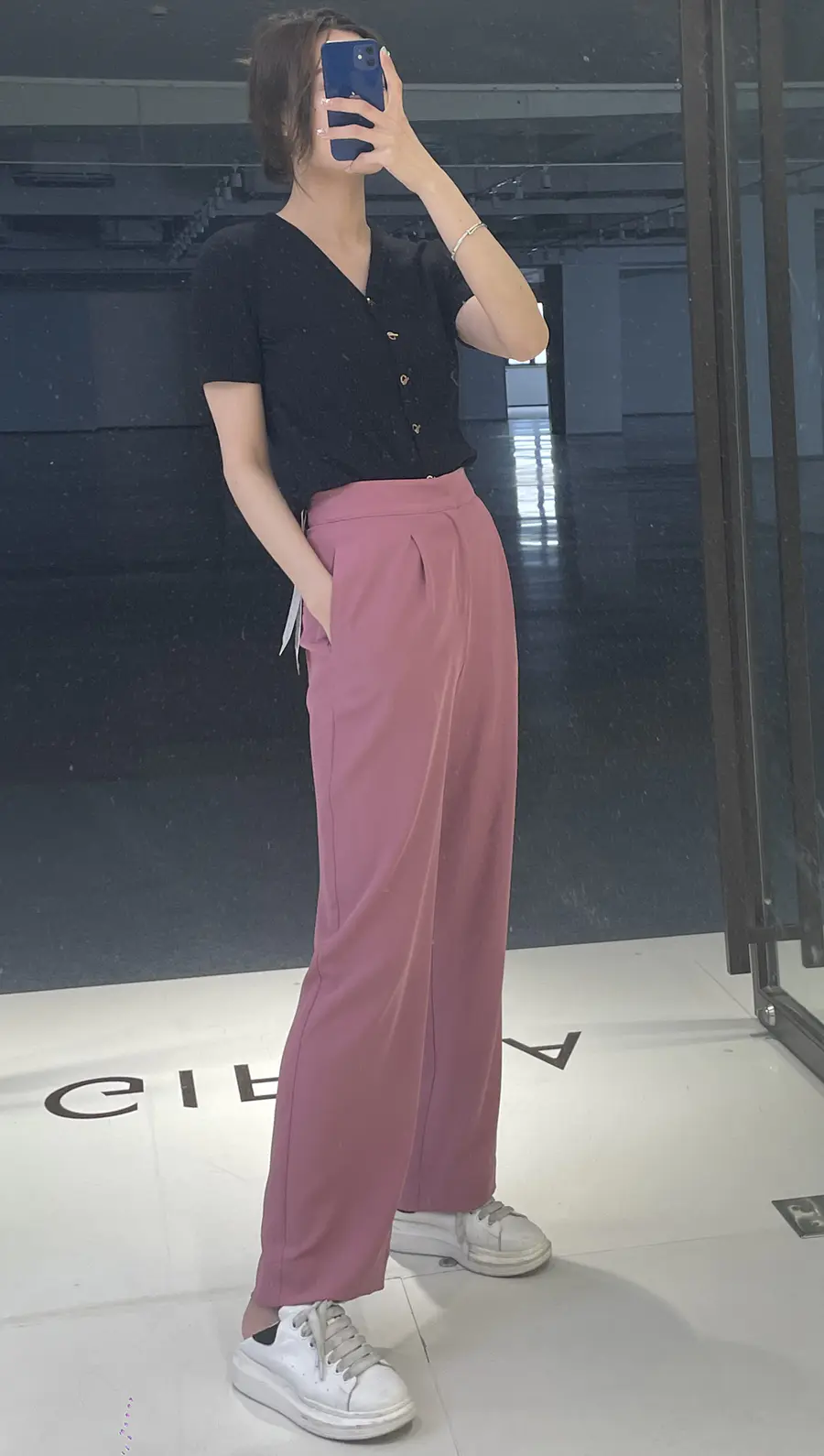 夏天果然还是要穿阔腿裤,显瘦显腿直,很好搭配衣服