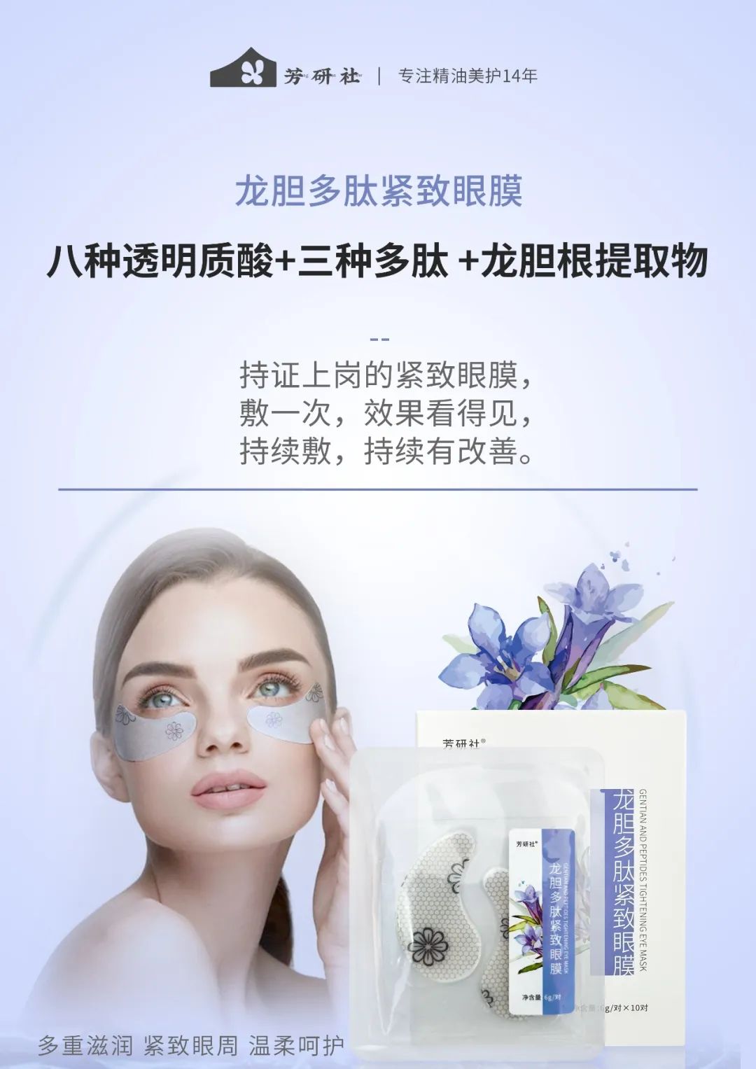 【淘宝】https://m.tb.cn/h.U20mJ8t?tk=3bYd2xNgI5p CZ3457 「芳研社 | 龙胆多肽紧致Q弹眼膜10对装多重滋润温柔呵护水灵紧致」
