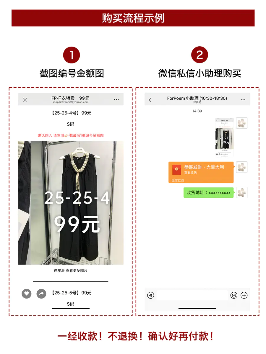 截图标注【编号+金额】图片 - 微信私聊小助理 - 红包转账 - 收货信息 - 3天内发出(发出后无法改地址)