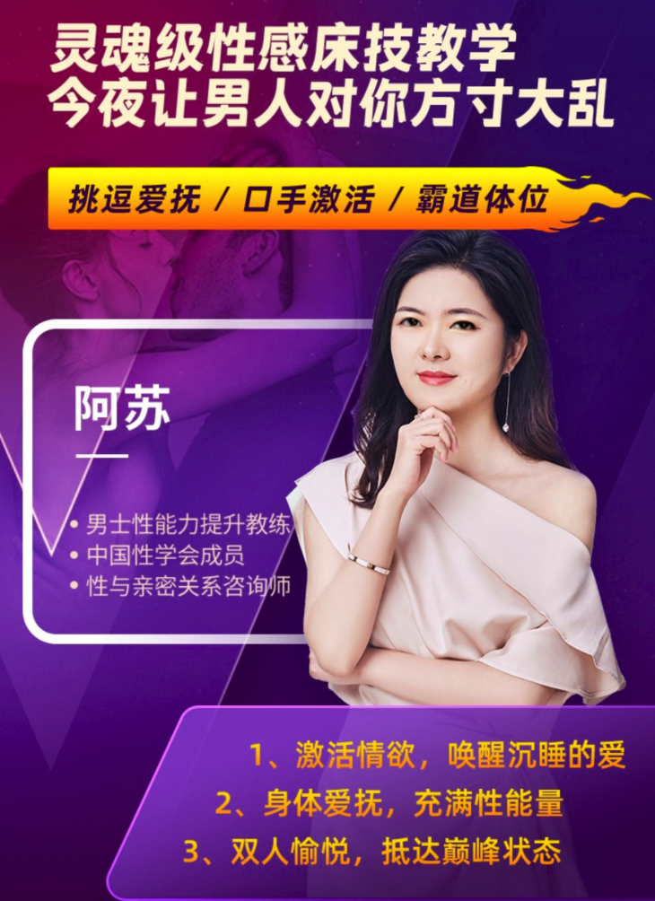 专攻女性亲密实战,男人性能持久,还有伴侣床技提升特训等的阿苏老师一定能帮助到你。