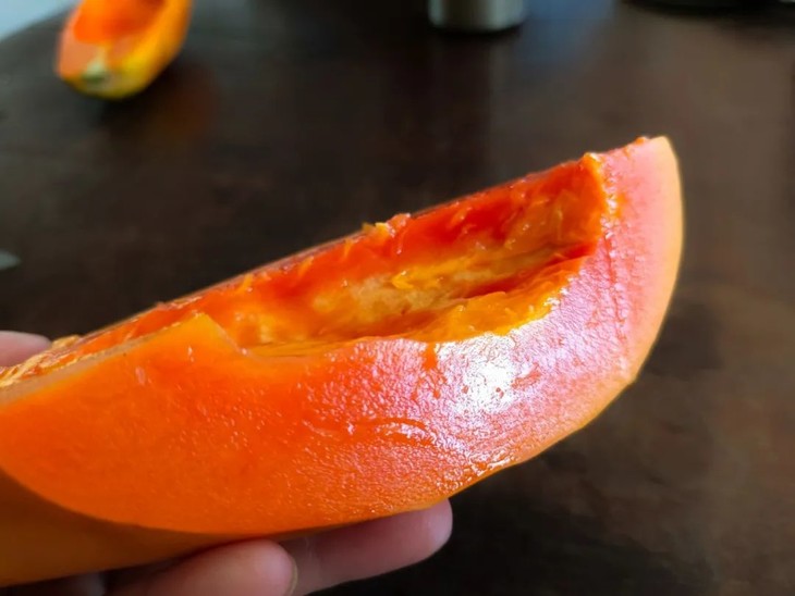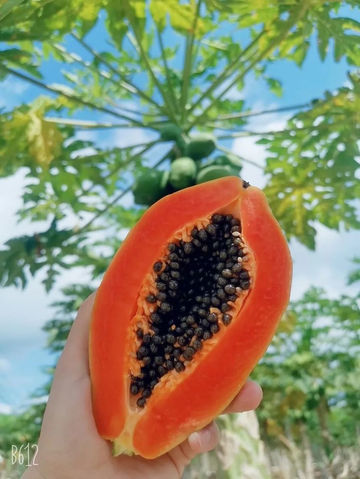 “红心木瓜”,外形美观,果肉红到透亮,与其它木瓜口感不一样,入口满满都是汁水,树上自然挂熟的口感,味道更甜更营养。