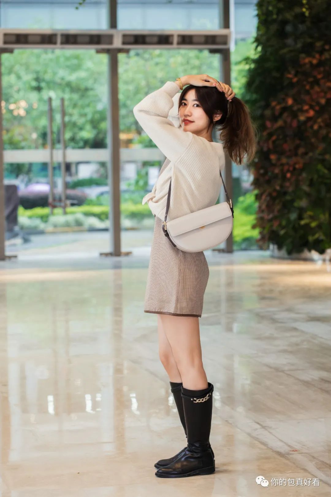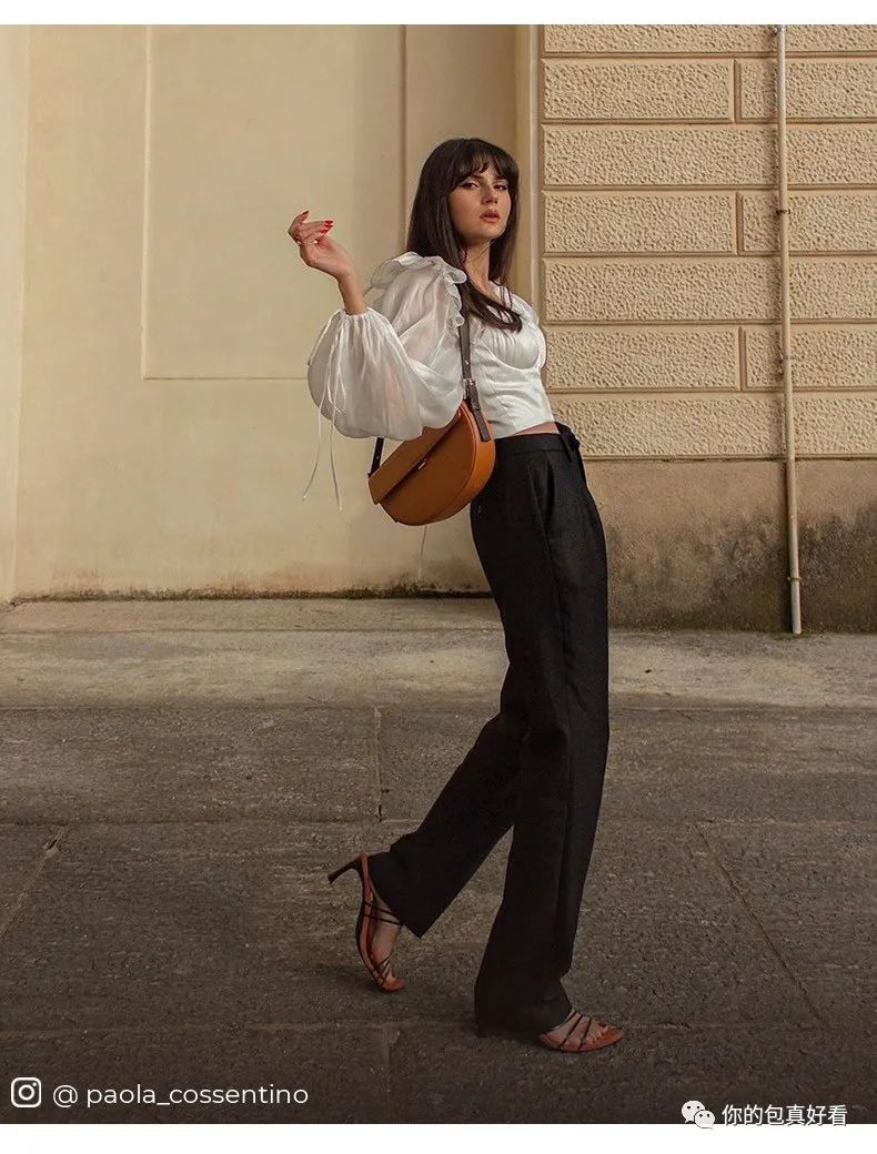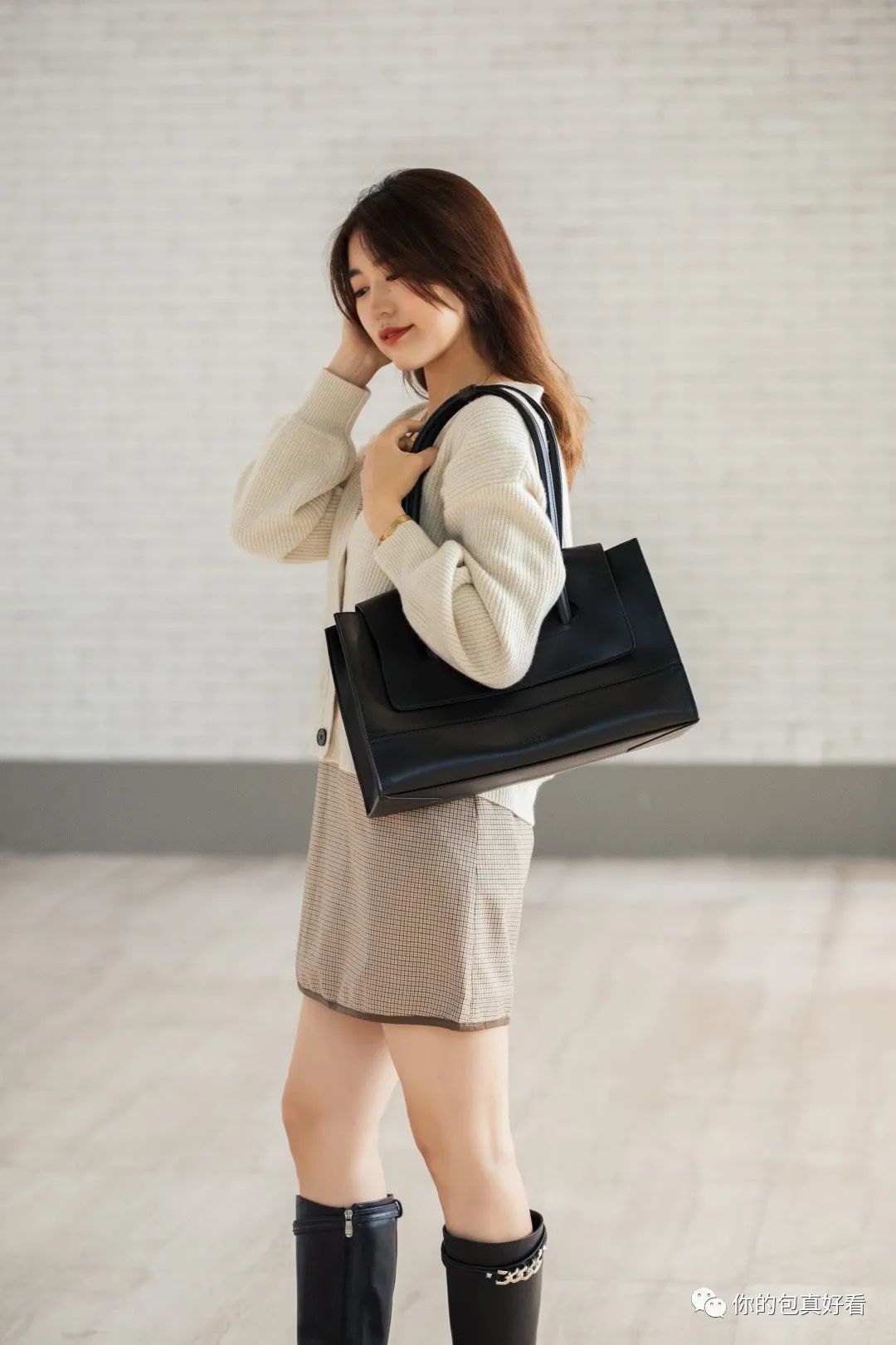 它很好地做到了百搭和设计感两不误,低调大气的外型让它非常好搭配,简直是为通勤上班的职业女性量身定制。背它出门不需要费心思去想造型,无论是浅色系还是暗色系都能很好地驾驭: