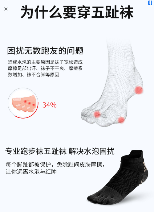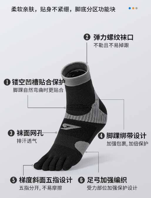 1、分趾设计-不易摩擦,轻松解决水泡困恼!