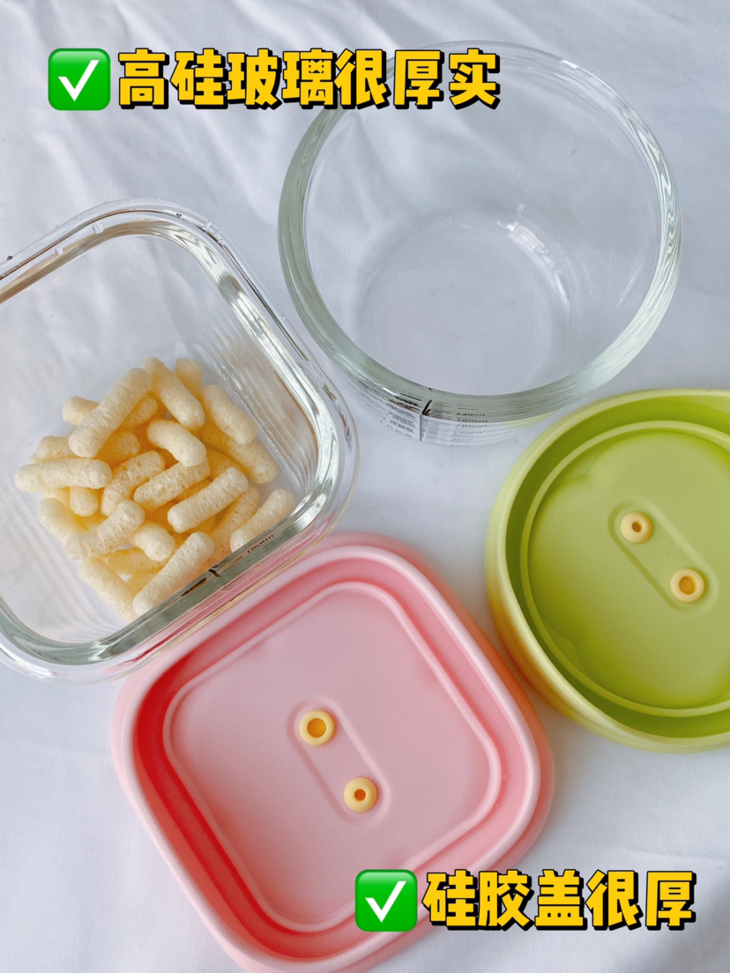 从宝宝开始吃辅食后,玻璃辅食盒使用频率太高了。我一般都是拿来蒸鸡蛋羹、蒸糕之类的,偶尔拿来放放没吃完的零食!