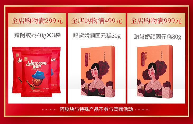 (阿胶块240g/250g、复方阿胶浆48支、即食燕窝40%固形物含量等特惠产品不参与满赠活动)