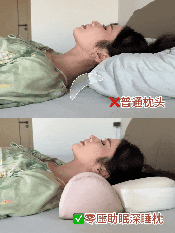 更可怕的是,那些“平平一片”的普通枕,根本没有高低区分,睡觉时脖子悬空,结果越睡越累,脖子越睡越酸。