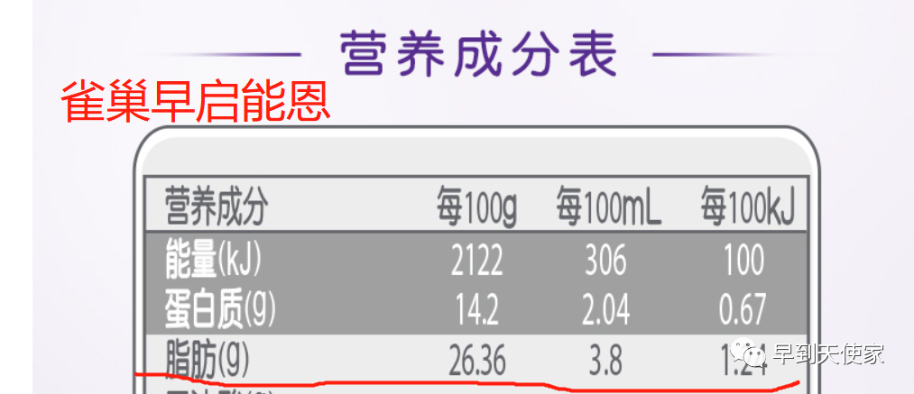 早启能恩含有脂肪3.8克