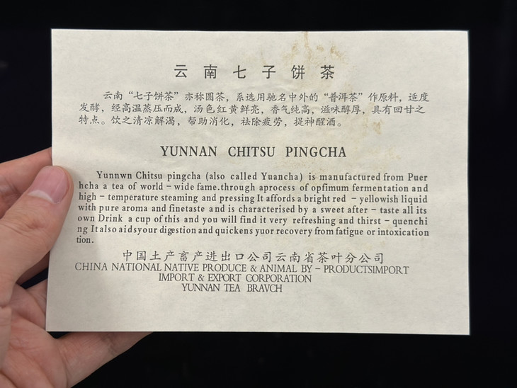 | 特点: | 弯腿“七”,大饼身,苹果绿“茶”字,双次印刷,内飞繁体厂,细字,平出。高等级茶箐原料 等等 |