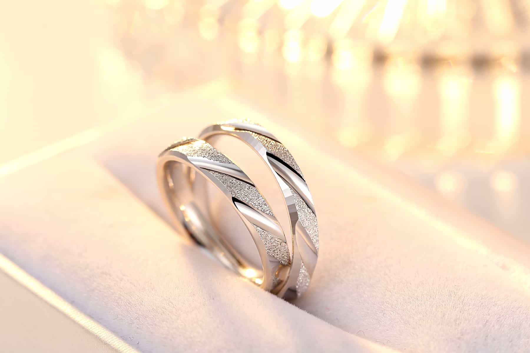 图一是KADER经典单品情侣磨砂对戒,极细的钉砂工艺,不仅赋予了戒指细碎的闪耀光芒,还无处不透露着低调内敛的轻奢时尚,纯银色泽时刻展现本身的魅力,是情侣之间送礼的不二选择哦!