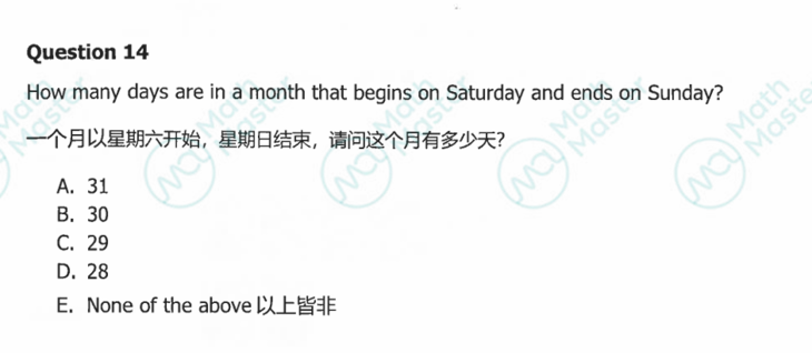 比如下面的SASMO二年级真题,属于校内三年级的年月日知识点的拓展题,难度明显高于同级别的其它赛事。