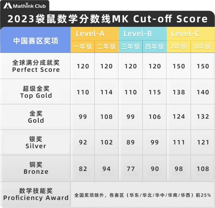 袋鼠数学竞赛的奖项分为全球奖项和中国区奖项两个层次: