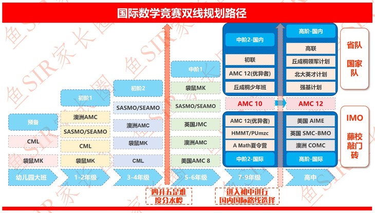 多数比赛在4年级开始有比较大的难度提升,基本上能走到4年级还可以参与各类国际竞赛并取得银奖及以上奖项的孩子,完全可以继续学习奥数,按照我们给出的路径通关,获得大满贯。