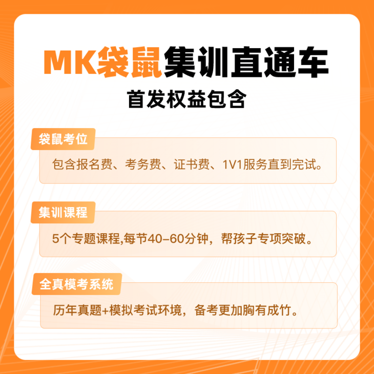 直通车提供一站式服务,包括考试规划、官方报名通道,以及独家真题册。专业老师全程指导,确保孩子备考无忧。