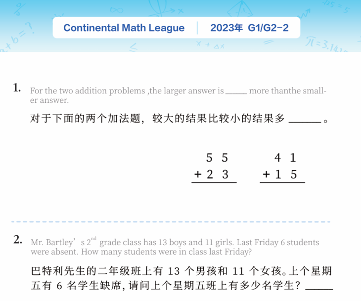 1-12年级学生均可以报名参赛(我们建议1-6年级孩子参加,初中参加AMC更为合适)。