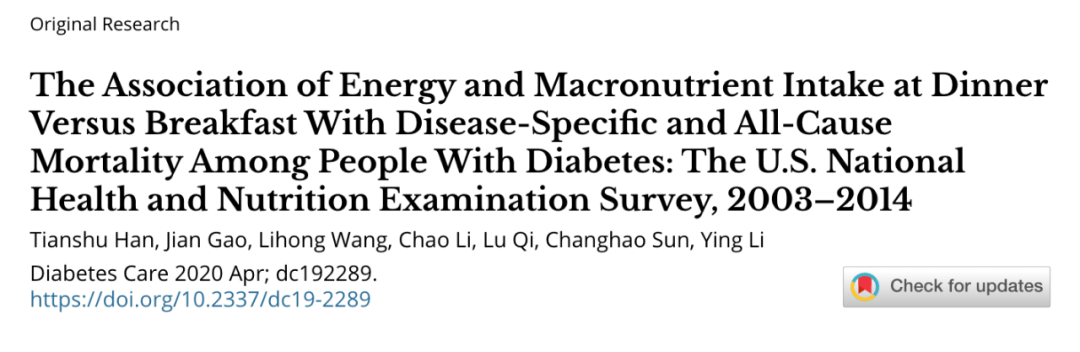 在糖尿病患者中,晚餐比早餐摄入更多的能量、脂肪和蛋白质,与更高的糖尿病死亡率、心血管疾病死亡率和全因死亡率相关。