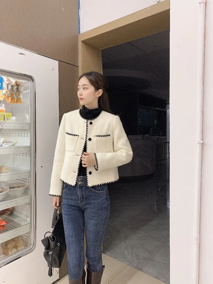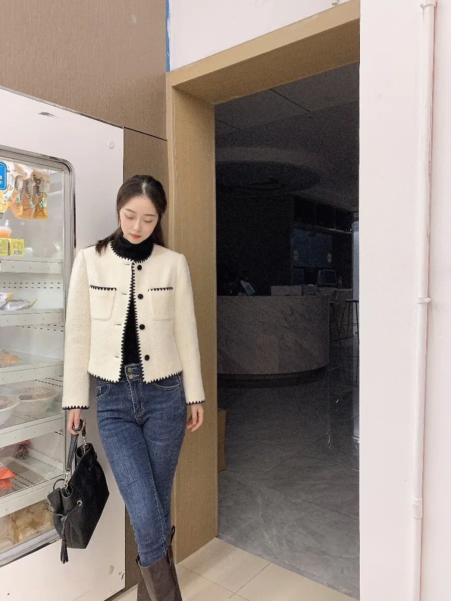 秋冬的搭配,离不开毛呢外套,正好今年我迷上了各种白色外套,三彩家的这一件就正好被我看中了!衣服不重,不压身,款式也不错! 面料材质100%绵羊毛,价格也划算