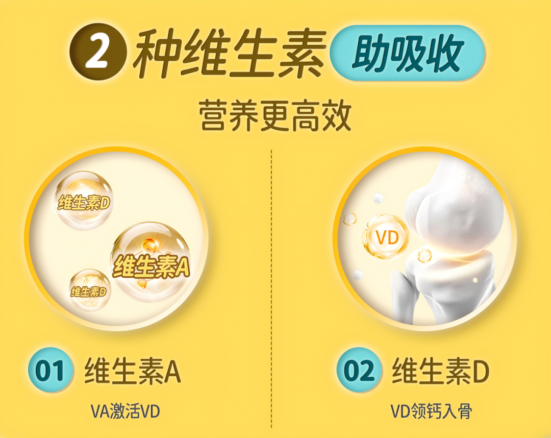 优质钙源说了,促吸收的VA、VD说了,