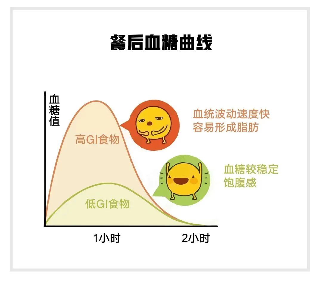 高GI食物进入胃肠后快速消化,释放葡萄糖速度快,升糖能力强;低GI食物进入肠道后停留时间长,饱腹感强,升糖能力弱。