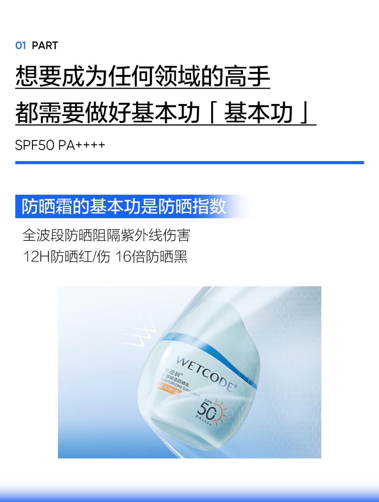🔵晒红晒伤→【SPF50 PA++++】