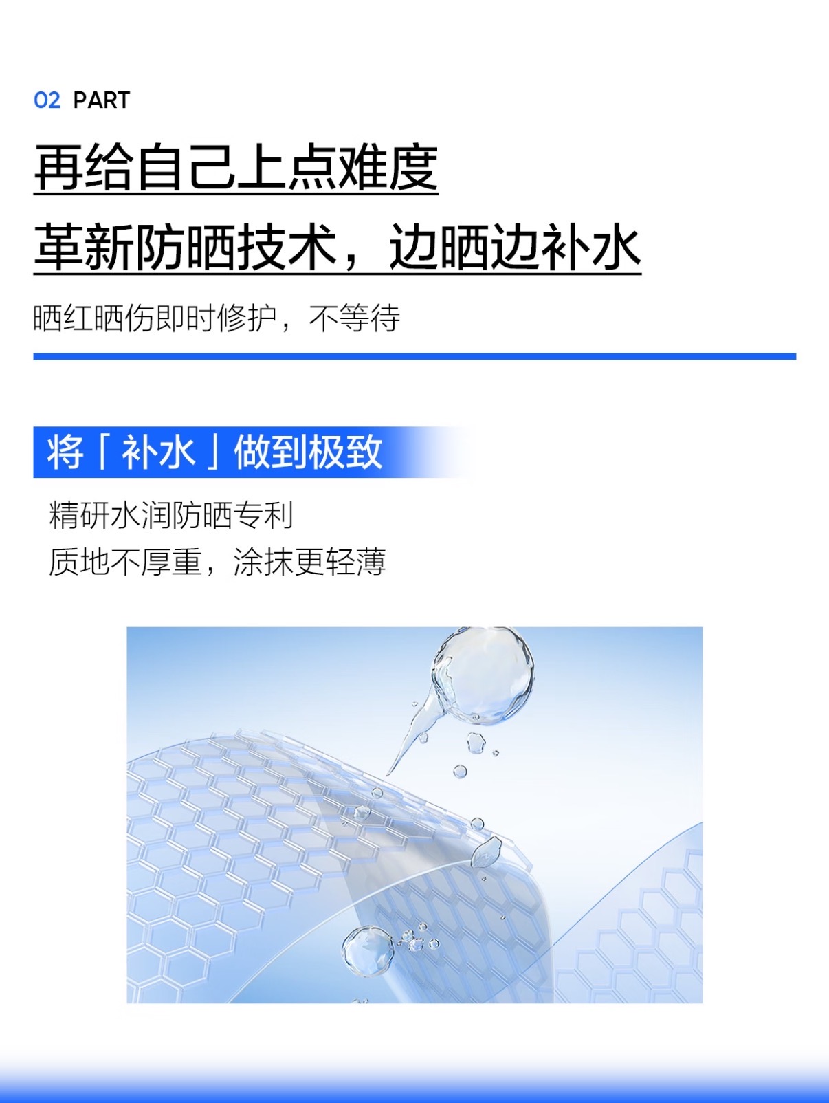 🔵油腻厚重→【防晒剂本身的选择-专研低油比防晒剂】