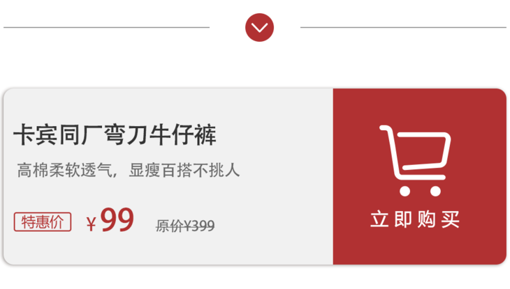 因工厂生产线调整,我们通过特殊渠道获得少量库存,省去品牌溢价与中间环节,原本专柜价399元的弯刀裤,今天99元就能拿下!!