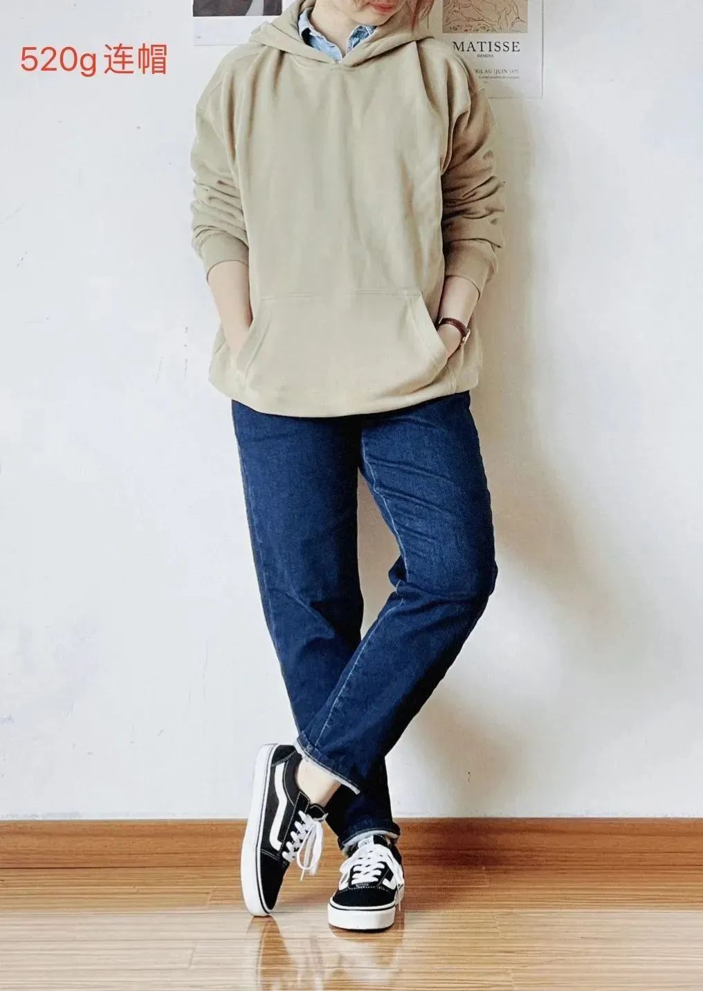 480g连帽,无袋鼠兜,整体看上去会更简约清爽。