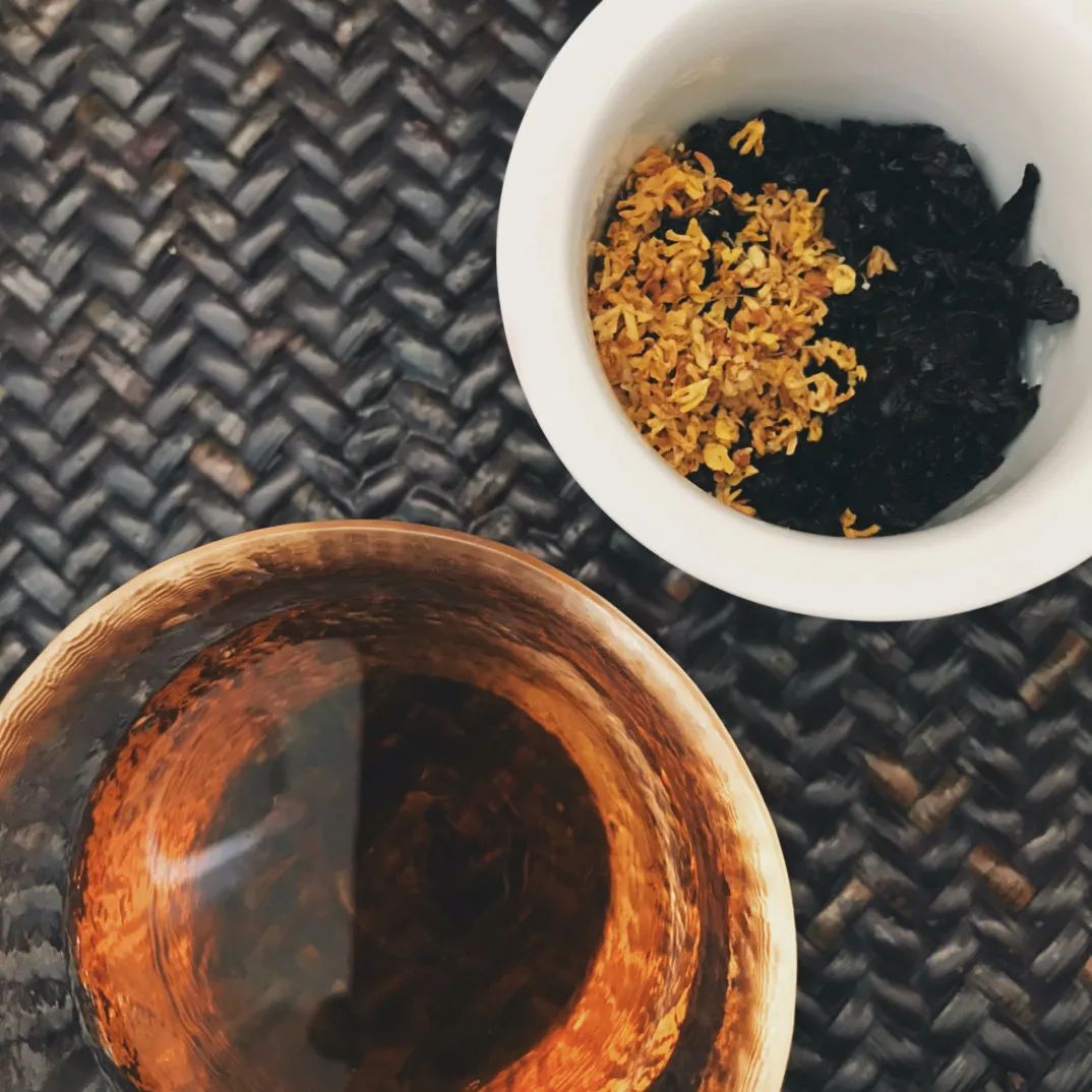 “一半茶一半桂,完美和谐,桂使茶少一分生涩,茶使桂多一副清骨。”