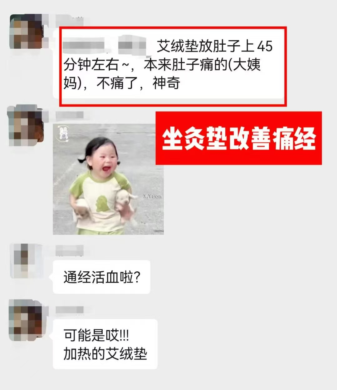 我们这款金丝艾绒草本热敷坐垫可以安排上~艾草是中药里少有的通全身十二经络的药物,穿透力最强,温阳祛寒湿效果最好。艾绒坐垫通过温热刺激,不断补充阳气,调节身体的阴阳平衡,增强机体的抵抗力和自我修复能力,寒邪被驱散,经络通了,自然就不痛了。(如果是在经期量比较大最好不坐,可以垫一垫小腹、后背)