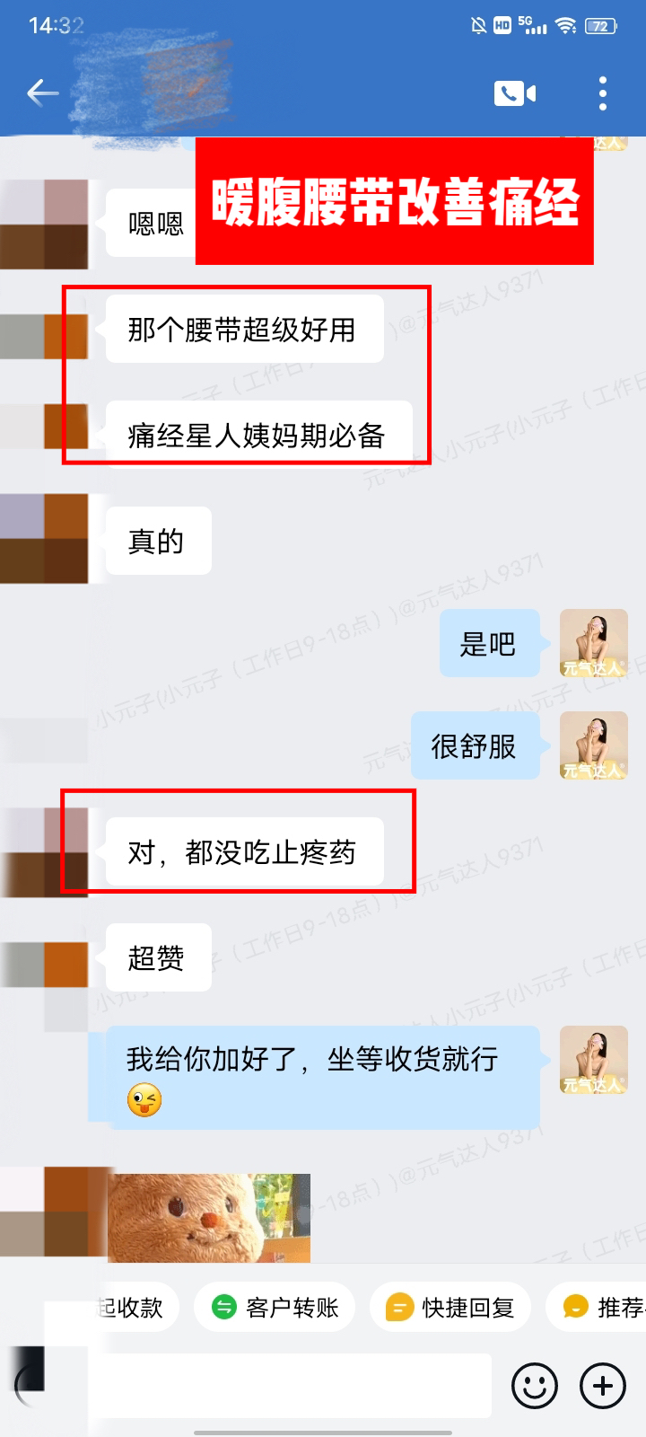 推荐我们的热敷腰带,大范围发热,能更好地覆盖住整个腹部。在下腹部放置暖腰带可以缓解肌肉痉挛,减轻疼痛。其原理是通过加热来促进局部血液循环,增加新陈代谢,提高机体防御能力,加速止痛物质的产生。另外我们的暖腰带对久坐导致的腰酸背痛等也有帮助哦~